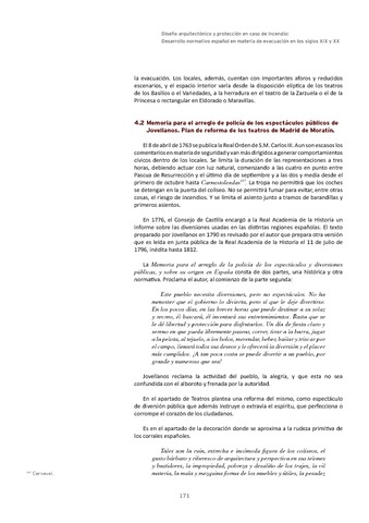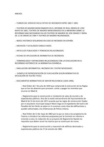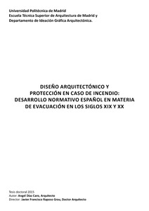 Esta es la búsqueda de respuestas a esa duda constante: De dónde venimos y que hemos ido dejando por el camino. ¿Está todo claro en este recorrido o hemos actuado por acumulación de errores heredados de procesos anteriores? Es la investigación a través del descubrimiento de nuestro pasado, de nuestros orígenes en materia de seguridad de protección contra incendios, y sobre todo de ejecución de una arquitectura pensada para ser recorrida con mayor seguridad y ser evacuada en un tiempo razonable. El trabajo investiga, a nivel nacional, la evolución de la sociedad y sus efectos sobre la manera de interpretar el problema de la seguridad contra incendios en los edificios. El interés fundamentalmente es poner en claro todos aquellos aspectos que afectan a la evacuación de las personas. Para ello se han estudiado los principales hitos de actuación, las preocupaciones principales surgidas en cada momento y las soluciones adoptadas. Se ha comprobado su aplicación o su demora hasta que se ha producido el siguiente gran suceso que ha motivado una nueva revisión de los procedimientos de diseño y control. En primer lugar, tratando de relacionar los incendios fundamentales que han influido en nuestra forma de abordar el problema en distintos momentos de la historia de España. En segundo lugar, haciendo un recorrido sobre la figura del arquitecto y su participación en los medios de control y legislación sobre la manera de intervenir en el servicio de incendios o de resolver los edificios en materia de protección contra incendios o evacuación de sus ocupantes. En definitiva, descubriendo los escritos de algunos especialistas, fundamentales para entender nuestra manera de abordar el problema de la protección en los edificios, a lo largo de la historia. Se ha revisado como se han producido los siniestros más importantes en teatros y otros locales públicos .Analizando la forma en que los arquitectos implicados han tratado de resolver las posibles deficiencias ante el riesgo. Se trata de la tipología edificatoria donde, por primera vez, surge la preocupación por adoptar medidas y procedimientos de seguridad en caso de incendio. Resultan locales con una importante siniestralidad, donde se desarrolla la principal actividad lúdica del momento, y que por el importante número de personas que albergan, son fuente de preocupación entre el público y las autoridades. Otras cuestiones en un tema tan amplio, que quedan simplemente esbozadas en este trabajo de investigación, son los procedimientos de los sistemas de extinción, la estructura organizativa de la ciudad, las primeras sociedades de seguros de incendios, la aparición de patentes a partir del desarrollo industrial del siglo XIX. Todo ello, con el hilo conductor de la reglamentación que se ha ido elaborando al respecto. Al principio, sobre espectáculos públicos, acotando el punto de partida en la materia de nuestra reglamentación. Anticipando sistemas constructivos y datos dimensionales de la evacuación. Llegados a mediados del siglo XX, abordando otros usos. Haciendo seguimiento de la modernización de los procesos edificatorios y la reglamentación sectorial. Recabando información de las organizaciones profesionales que comienzan a reclamar una coordinación nacional de los sistemas preventivos y que desemboca en el Proyecto de Reglamento de prevención contra el fuego que nunca será publicado. Toda esta etapa, plagada de documentos de carácter voluntario u obligatorio, local y nacional, van definiendo los criterios dimensionales con los que debe resolverse los elementos arquitectónicos susceptibles de servir para la evacuación. Se trata de una etapa intensa en documentación, cambiante, sujeta a los criterios que establecen los países del entorno más avanzados en la materia. Las dos últimas décadas del siglo, acotadas por la transición política y varios siniestros de graves consecuencias, definen el proceso normativo que culmina con el código técnico de la edificación que hoy conocemos. Es un periodo de aprendizaje y asimilación del capítulo de la seguridad, donde los métodos son variados. Donde la intencionalidad última es trasladar un sistema prescriptivo a un modelo prestacional propio de la madurez en el análisis del tema y en las corrientes de los países del entorno. ABSTRACT This is the search for answers to that constant question: Where do we come from and what have left along the way? Has everything been clear on this journey, or have we acted as a result of a collection of errors learned from prior processes? This has been research through exploration of our past, of our origins regarding fire protection safety, and, above all, of the endeavour to utilize architecture aimed at offering the highest level of safety and evacuation in a reasonable time. This project has researched society’s change nationwide and its effects on how to interpret the difficulty of fire protection safety in buildings. Its focus has fundamentally been to clarify those aspects that affect the evacuation of people. To this end, the main milestones of action, the principal concerns that have arisen at each step, and the solutions taken have all been studied. A check was performed on their application; or their delay until a significant event occurred that prompted a new revision of design and control procedures. Firstly, this was done by attempting to connect the main fires that have influenced how we handle the problem at different times in Spain’s history. Secondly, an examination was done on the figure of the architect and his participation in the means of control and legislation on how to intercede in fire services, or how the architect finds solutions for buildings in terms of fire protection, or the evacuation of their occupants. In short, the written works of certain specialists, who are essential to our understanding of how to deal with the problem of protection in buildings, were explored throughout histor
