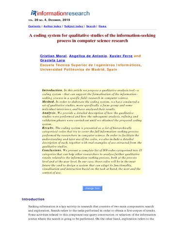 | Título: | A coding system for qualitative studies of the information-seeking process in computer science research |