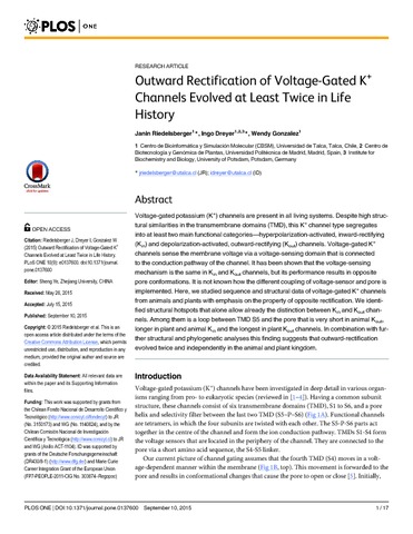 | Título: | Outward Rectification of Voltage-Gated K+ Channels Evolved at Least Twice in Life History |