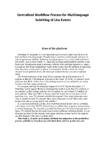 | Título: | Centralized workflow process for multilanguage subtitling of live events |