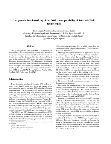 | Título: | Large-scale benchmarking of the OWL interoperability of Semantic Web technologies |