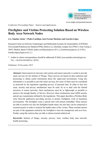 | Título: | Firefighter and victims protecting solution based on wireless body area network nodes |
