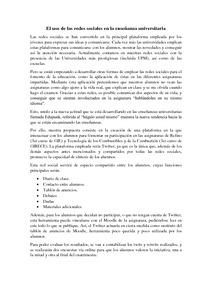 Las redes sociales se han convertido en la principal plataforma empleada por los jóvenes para expresar sus ideas y comunicarse. Cada vez más las universidades emplean estas plataformas para comunicarse con los alumnos, mostrar las novedades y conseguir así la atención necesaria. Actualmente contamos en nuestras redes sociales con la presencia de las Universidades más prestigiosas (incluida UPM), así como de las escuelas. Pero se están empezando a desarrollar otras formas de emplear las redes sociales para el fomento de la educación, como la aplicación de éstas en las diferentes asignaturas impartidas. Mediante esta aplicación pretendemos que nuestros alumnos no vean las asignaturas como algo ajeno a la vida real, que explican en clase y se me olvida cuando hago el examen. Gracias a estas redes, es posible comunicar dos aspectos de su vida, y conseguir que se sientan involucrados en la asignatura ?hablándoles en su mismo idioma?.