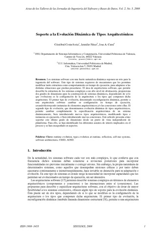 | Título del Evento: | Workshop on Autonomic and SELF-adaptive Systems, junto a XIII Jornadas de Ingeniería del Software y Bases de Datos (JISBD'08), |