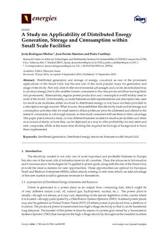 | Palabras Clave Informales: | distributed generation; distributed energy resources; business model; Smart Grid |