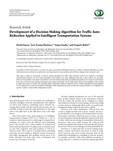 | Título: | Development of a Decision Making Algorithm for Traffic Jams Reduction Applied to Intelligent Transportation Systems |
