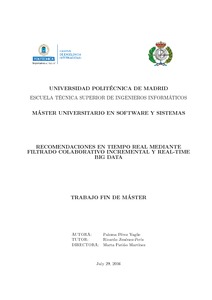 | Título: | Recomendaciones en tiempo real mediante filtrado colaborativo incremental y real-time big data |