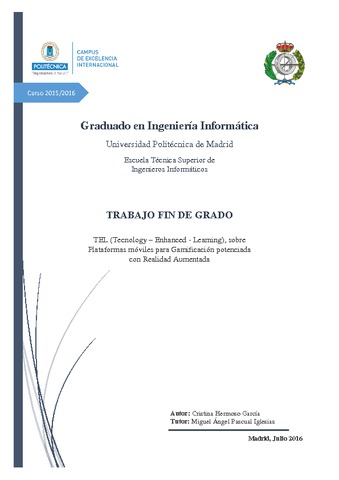 | Título: | TEL (Tecnology – Enhanced - Learning), sobre plataformas móviles para gamificación potenciada con realidad aumentada |