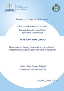 | Título: | Desarrollo front-end y back-end de una aplicación Android distribuida para el sector de la restauración |