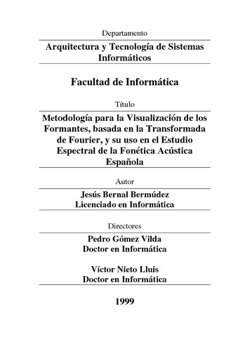 | Título: | Metodología para la visualización de los formantes, basada en la transformada de Fourier, y su uso en el estudio espectral de la fonética acústica española |