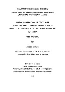 | Título: | Nueva generación de centrales termosolares con colectores solares lineales acoplados a ciclos supercríticos de potencia |