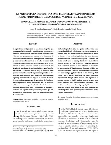 | Título: | Ecological agriculture and its influence on rural prosperity: an agricultural Company?s Vision (Murcia, Spain) |