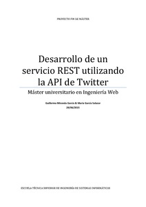 El presente proyecto fin de máster (en adelante PFM) surge de la necesidad de ampliar algunas funcionalidades de Twitter, desarrollando un servidor que consume el servicio REST de la red social Twitter y a su vez ofreciendo su propio servicio REST.