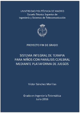 El presente proyecto tiene como objetivo la continuación e integración del trabajo realizado por Dña. Estefanía Sampedro y Dña. Belén Duro en sus respectivos proyectos de fin de grado, dedicados al desarrollo del sistema SONRIE (Sistema de terapia, basadO en KiNect, paRanIños con parálisis cErebral). Se han llevado a cabo los trabajos futuros que quedaron indicados en las anteriores fases de desarrollo de SONRIE, con el objetivo de finalizar la implementación del sistema. SONRIE es un sistema que permite la rehabilitación de niños con PCI (Parálisis Cerebral Infantil), ofreciendo un entorno de videojuegos para que se lleven a cabo los ejercicios de rehabilitación que sin SONRIE sería necesario que fueran realizados con la presencia constante de un fisioterapeuta. SONRIE está formado por un software que implementa una serie de juegos utilizando el sensor Kinect 360 para detectar y analizar el movimiento del niño y un framework que almacena los datos de los niños. Dicho framework permite que el terapeuta que propone la terapia pueda disponer de información relativa a la configuración personalizada de los juegos y al resultado de los mismos durante el proceso de terapia. El software consiste en 4 juegos que ayudan al niño a aprender a realizar movimientos que debido a la PCI suponen una dificultad para él, obteniendo estímulos positivos cuando consigue realizar los ejercicios correctamente y permitiendo varios intentos para facilitar el aprendizaje. El sistema almacena los datos obtenidos durante los ejercicios para que de manera remota el terapeuta pueda consultar los resultados y la evolución de los niños, conectándose a un servidor web que mantiene guardada de manera persistente y segura la información de SONRIE. Aprovechando la unión de medicina y tecnología, la integración de juegos y terapia facilita el trabajo con el niño, pues aprende de manera amena y divertida. Además permite realizar la rehabilitación fuera de la clínica del terapeuta, que gracias al servidor web podrá supervisar la evolución de los niños en cualquier momento simplemente con una conexión a internet, constituyendo el conjunto un sistema que ofrece numerosas ventajas respecto a la manera actual de llevar a cabo estas terapias.