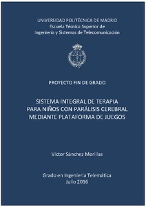 The aim of this project is to go on and integrate the work that was developed by Estefanía Sampedro and Belén Duro in their final degree projects, which were focused on building the SONRIE (Therapy system for kids with cerebral paralysis based on Kinect) system. They have been developed the tasks which were indicated as future work in the previous phases of development SONRIE, with the aim of finalizing the implementation of the system. SONRIE allows the rehabilitation of children with CP (Cerebral Palsy), offering a videogame environment to make rehabilitation exercises which without SONRIE would need to be made with a therapist. PCI is defined as a group of a group of disorders of psychomotor development of children, which involve some non-progressive movement disorders that limit the activities you can perform. PCI is due to a non-progressive brain injury that occurs during fetal development or in the first two years of the child and appears in 2 of every 1000 children. Thanks to rehabilitation we can reduce the effect of paralysis in the activities carried out in daily lives of these children. SONRIE consists of a software which runs some games using the 360 Kinect sensor to detect movement of the child and a framework that holds the data of children on a web server, so the therapist can dispose of them with an internet connection. This software consists of 4 games that help the child in learning the performance of movements that due to the CP are difficult for him, with positive feedback when he performs the exercises correctly and allowing several attempts to facilitate learning. The system stores the data obtained during the exercises, so the therapist can check the results and progress of children, connecting to a web server that maintains stored safely SONRIE information. Thanks to the union of medicine and technology, integration of games and therapy facilitates working with children because they learn is a fun way. It also allows rehabilitation outside the clinic of the therapist, which thanks to the web server can monitoring the progress of children at any time just with an internet connection. In conclusion, the whole system offers many advantages over the current way of carrying out these therapies.