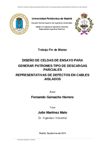 | Título: | Diseño de celdas de ensayo para generar patrones tipo de descargas parciales representativas de defectos en cables aislados |