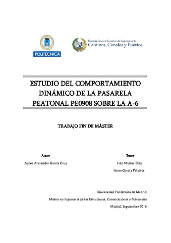 | Título: | Estudio del comportamiento dinámico de la pasarela peatonal PE0908 sobre la A-6 |