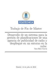 | Título: | Desarrollo de un sistema para la gestión de planificaciones de una agencia de publicidad de radio y despliegue en un entorno en la nube |