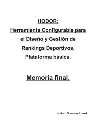 | Título: | HODOR: herramienta configurable para el diseño y gestión de rankings deportivos: plataforma básica. |