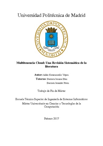 | Título: | Multitenencia cloud : una revisión sistemática de la literatura |