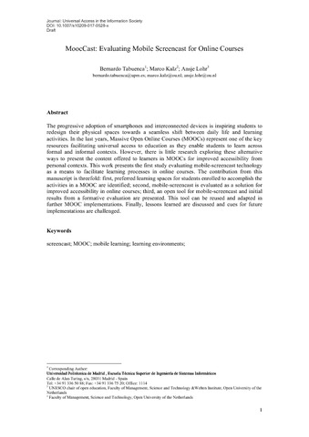 | Título: | MoocCast: Evaluating Mobile Screencast for Online Courses |