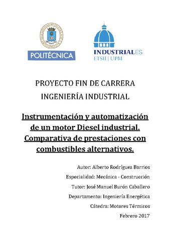 | Título: | Instrumentación y automatización de un motor Diesel industrial. Comparativa de prestaciones con combustibles alternativos. |