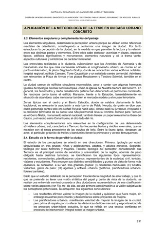 La presente tesis aborda el desarrollo de una metodología para el estudio, planificación y gestión de los pasajes de núcleos urbanos, rurales y espacios periurbanos. El tema, en primer lugar, abarca dos conceptos: el qué (estudio del paisaje), y el dónde (lo urbano, incluyendo los núcleos rurales, y los espacios periurbanos, o de transición). La oportunidad e interés radican en la creciente importancia del paisaje en la calidad de vida de las sociedades, y en la necesidad de ofrecer propuestas metodológicas para su gestión y mejora. El concepto de paisaje adoptado, por su operatividad e interés, se aproxima al definido por el Convenio Europeo del Paisaje del año 2000: considerándolo como la imagen de un territorio, tal y cómo es percibida por la población. Respecto a lo urbano, concepto igualmente polisémico, el ámbito considerado corresponde con las diversas caracterizaciones de los núcleos urbanos, rurales, y los espacios de transición que los rodean, considerándolos porciones singulares del territorio. La hipótesis de partida plantea la posibilidad de identificar diversos elementos y variables que permitan clasificar tipos y estructuras en los paisajes urbanos, para facilitar los proyectos de mejora y gestión. El objetivo es el desarrollo de modelos metodológico-conceptuales, y como resultado, se presenta su aplicación en determinados casos concretos desarrollados por el autor. Se trata, por tanto, de una tesis que empieza y acaba en la práctica, pasando por un proceso intermedio de reflexión y sistematización. La revisión de antecedentes se ha centrado en dos aspectos: por un lado, los relativos al concepto moderno del paisaje, en que muchos de estos culminan en la mencionada visión que recoge el Convenio Europeo (CEP). Por otra parte, se revisan los antecedentes específicos del paisaje urbano, a través de diversas disciplinas que lo han abordado de forma más o menos tangencial: el diseño urbano, el estudio de la morfología urbana, las teorías de la percepción, la psicología ambiental, hasta llegar a algunos pocos casos concretos que lo plantean desde una perspectiva integral próxima a la del Convenio Europeo. A partir de esto, se plantea el modelo conceptual para el estudio, comprensión e intervención en el paisaje urbano. Se propone en tres etapas cronológicas de desarrollo (descriptiva, interpretativa y propositiva), y considerando, en estas, las dos grandes dimensiones del paisaje según el CEP: la base paisajística (objetiva) y la percepción (subjetiva). Las tres fases citadas corresponden: primero, a la identificación de los elementos o variables que definen los tipos de paisaje. Estas pueden ser de la base del paisaje, o de la percepción. Entre las primeras, están aspectos morfológicos –terreno, tramas urbanas, tipos edilicios- y de ―textura‖ o piel; aspectos ―subyacentes‖ –evolución histórica, carácter socioeconómico, usos y funciones urbanas-; y aspectos complementarios (peatones, ruidos, tráfico, olores) y singulares (simbólicos o físicos); entre las variables de la percepción, la caracterización de los perceptores, de sus preferencias, intereses y referentes culturales; de los lugares principales de percepción, y de la forma de percibir desde ellos. La segunda define elementos elaborados a partir de los anteriores: unidades de carácter de paisaje, y unidades de exposición visual; calidad de las unidades y elementos del paisaje; estudio de dinámicas históricas y actuales, así como de sus problemas y potenciales; y a partir de estos, generación de documentos relativos a la fragilidad, entendida como superposición de la calidad de los paisajes, y su nivel de exposición visual. En esta etapa surgen elementos referenciales de particular interés: puntos de potencial de vistas, bordes y fachadas urbanas, perfiles urbanos, fondos escénicos relevantes. La última etapa corresponde a los elementos elaborados para la planificación y gestión, que han de surgir naturalmente de los anteriores: criterios y objetivos para el paisaje; catálogos de unidades y elementos del paisaje, propuestas para su planificación y gestión. Este modelo conceptual se convierte en un modelo metodológico al hacer de cada fase y elemento, una tarea a ser desarrollada durante la aplicación a un caso concreto. Se presenta un modelo general para espacios urbanos y de núcleos rurales, y otro específico, aplicado a las zonas periurbanas. El capítulo IV presenta los diversos trabajos que sirvieron tanto de preparación del modelo, como de aplicación del mismo una vez desarrollado. Estos resumen la trayectoria de elaboración de la tesis: diversos trabajos de intervención en el paisaje, o de gestión o análisis que sirvieron de preparación, y tres aplicaciones específicas realizadas a posteriori: análisis del paisaje de las ciudades de Temuco, en Chile, y Dubai, en Emiratos Árabes Unidos, y análisis del paisaje urbano y periurbano de un núcleo rural, Monreal de Ariza, en Zaragoza, España. Finalmente, se extraen diversas conclusiones: la relevancia de una doble investigación en los aspectos físicos, y perceptivos, en la configuración de una idea de los paisajes urbanos; la existencia de elementos explícitos, pero también implícitos, que explican la configuración de aquellos; la singularidad de lo urbano, como espacio particular que merece una consideración específica, y también de lo periurbano, como transición a lo rural. ABSTRACT The present thesis developes a methodology for the study, planning and management of urban, rural and peri - urban spaces. The theme, first, encompasses two concepts: the ―what‖ (the landscape), and the where (the urban, including rural nuclei, and the peri-urban spaces). The opportunity and interest lie in the growing importance of the landscape in the quality of life of societies, and in the need of technical proposals for its management and improvement. The concept of landsc