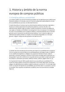 Las compras públicas son una herramienta que pueden usar las administraciones públicas para fomentar cambios en el mercado, como en el caso del cuidado del medio ambiente o el caso de la accesibilidad para personas con diversidad funcional. una política de accesibilidad TIC a través de compras públicas necesita dos componentes. Por un lado, debe existir una ley que obligue a las administraciones públicas a adquirir productos y servicios TIC. Por otro lado, debe existir un conjunto de requisitos de accesibilidad, que permitan saber si un producto o servicio es accesible. En Europa se ha realizado el estándar EN 301 549 que define la segunda parte de una política de compras públicas accesibles: los requisitos técnicos de accesibilidad. Este documento presenta la historia de este estándar y describe su ámbito, estructura y contenido.