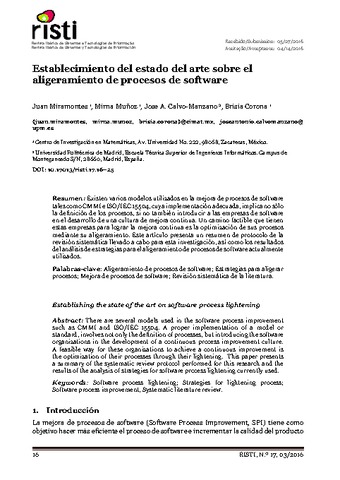 | Título: | Establecimiento del estado del arte sobre el aligeramiento de procesos de software |
