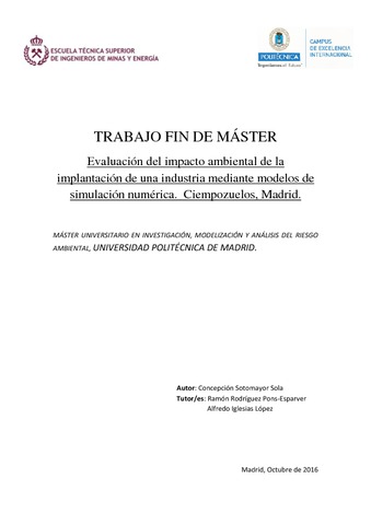 | Título: | Evaluación del impacto ambiental de la implantación de una industria mediante modelos de simulación numérica. Ciempozuelos, Madrid. |