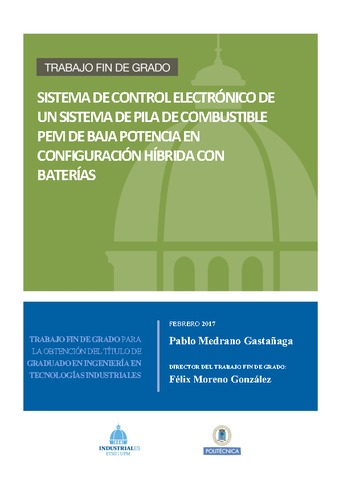 | Título: | Sistema de control electrónico de un sistema de pila de combustible PEM de baja potencia en configuración híbrida con baterías |