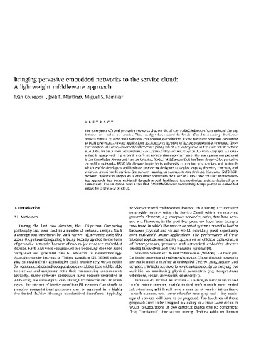 | Título: | Bringing pervasive embedded networks to the service cloud: a lightweight middleware approach |