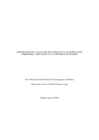 | Título: | Integración de la ecología del paisaje en la planificación territorial : Aplicación a la comunidad de Madrid |