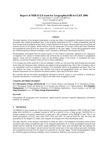 | Título: | Report of MIRACLE team for Geographical IR in CLEF 2006 |
