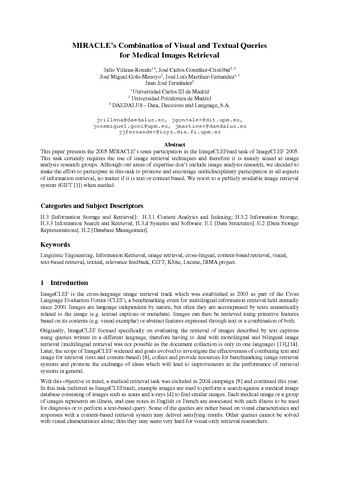 | Título: | MIRACLE’s Combination of Visual and Textual Queries for Medical Images Retrieval |