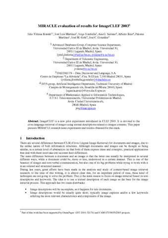 | Título: | MIRACLE evaluation of results for ImageCLEF 2003 |
