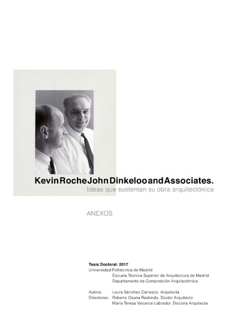 Durante la segunda mitad del siglo XX, la arquitectura de los Estados Unidos era una de las referencias a nivel mundial. Varios de los edificios más significativos de esa arquitectura salieron de la oficina dirigida por Kevin Roche y John Dinke¬loo (KRJDA). En sus primeros quince años de trayectoria, entre 1966 y 1981, definieron una manera de hacer ajena a tendencias y modas. La variedad formal de sus más de cuarenta proyectos no permitían encuadrarles en ninguna tendencia, su gran va¬lor, sin embargo, era que transmitían profesionalidad y pulcritud en cada detalle. Esta actitud era totalmente intencionada, pues el equipo promovía la especifici¬dad y singularidad de cada obra a partir de la solución de prob lemas concretos. Esta tesis doctoral pretende demostrar que en sus trabajos existe un hilo conduc¬tor que va más allá de cualquier idea formal preconcebida. Esta continuidad se ha encontrado en una serie de ideas aplicadas en el proceso de diseño. Un proceso creativo que se encuadra dentro de las teorías del pragmatismo. El objetivo prin¬cipal de la investigación es localizar, ordenar y exponer estas ideas. A través de los distintos medios de difusión y con ayuda de las fuentes prima¬rias, se ha conseguido formular el cuerpo teórico en el que se han sustentado sus proyectos. Resumiendo sus intenciones en pocas palabras, se podría decir que su trabajo ha destacado por perseguir la innovación, tanto técnica como tipológica, y por implementarse adecuadamente en su contexto, entendiendo como tal el lugar físico en el que se ubicaban los edificios, pero también el momento en el que se realizaron. Con estos propósitos lograron propuestas novedosas, muy valoradas por críticos y profesionales. Los nuevos planteamientos para los espacios de trabajo en la Fundación Ford y la Union Carbide o las fábricas de la Cummins Engine Company les convirtieron en verdaderos inventores de tipos, que primaban el bienestar de los usuarios por encima de cualquier otra cosa. Asimismo, sus trabajos introdujeron conceptos que definían los cambios en la vida estadounidense del momento. Reconocieron rápidamente la influencia del vehículo privado en la arquitectura, el concepto de ecología o la necesidad de fomentar el espacio colectivo. Además, en esta tesis se incluyen también los conceptos que la crítica vincula¬ba a los proyectos del equipo y que les integraban en los debates de la época. Así, sus edificios se analizaban constantemente destacando su monumentalidad, la expresividad estructural y las tendencias estilísticas que les llevaron desde la abstracción y el minimalismo a la posmodernidad más comercial. ABSTRACT During the second half of the 20th century, when architecture in the USA was a worldwide reference in the field, several of the most iconic buildings built during the time came from Kevin Roche and John Dinkeloo´s studio. In the first fifteen years of their career, between 1966 and 1981, they defined a way of working that defied trends and styles. Their work on more than fourty pro¬jects, very different to each other from a formal point of view, made it difficult to fit them within any particular style. Each project transmitted professionalism and neatness on details. Intentionally, the team demonstrated specificity and singular¬ity in every project as a consequence of solving particular problems. This doctoral thesis aims to demonstrate a unifying thread in their work beyond any preconceived formal aspect. The continuity is found in numerous ideas ap¬plied through pragmatism rather than dogmatism. The aim of this research is to identify, understand and explain the ideas behind their work. Using all media, including primary sources, the theoretical basis of their achieve-ments have been formulated. If their work can be summed up in a few words, it is that it stands out through their constant innovation –both technical and typolog¬ical– and for the ability to implement their work in context. Through the latter, they understood each project not just as a physical space but also as a sign of the moment. On this basis, they produced innovative and highly valued work for which they were awarded with the most prestigious prizes. New approaches on workplaces like the Ford Foundation or the Union Carbide, or the industrial buildings for the Cummins Engine Company, revealed them as architects who prioritized the users´ welfare over anything else. Their work intro¬duced new concepts that defined and reflected U.S lifestyle changes at the time. Through this focus they quickly realized the importance of the private vehicle in architecture, the concept of ecology and the necessity to encourage collective spaces, among others. This thesis covers the contemporary critical view that the team´s projects were interlinked with the architecture at the time. Their projects were constantly de¬fined by critics within formal viewpoint that highlighted monumentality, struc¬tural expression and stylistic trends, that moved from abstraction and minimalism towards postmodernism.