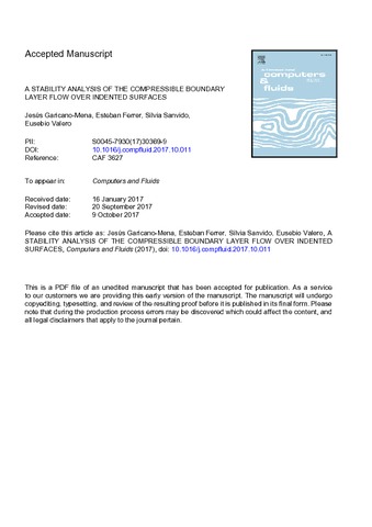 | Título: | A stability analysis of the compressible boundary layer flow over indented surfaces |