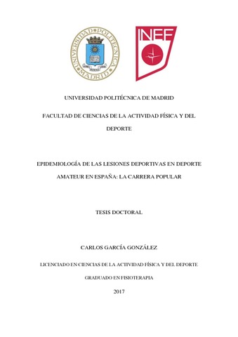 | Título: | Epidemiología de las lesiones deportivas en deporte amateur en España : la carrera popular |