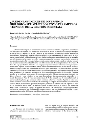 | Título: | ¿Pueden los índices de diversidad biológica ser aplicados como parámetros técnicos de la gestión forestal? |