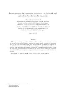| Título: | Inverse problem for Lagrangian systems on Lie algebroids and applications to reduction by symmetries |