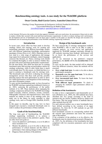| Título: | Benchmarking ontology tools. A case study for the WebODE platform |
