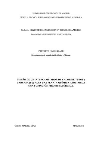| Título: | Diseño de un intercambiador de calor de tubos y carcasa (1-2) para una planta química asociada a una fundición pirometalúrgica |