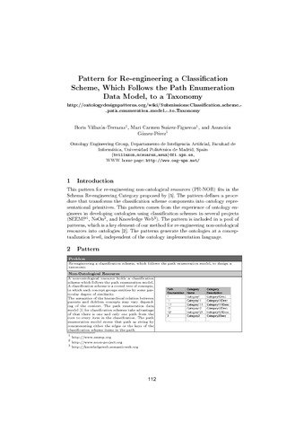 | Título: | Pattern for Re-engineering a Classification Scheme, which Follows the Path Enumeration Data Model, to a Taxonomy |