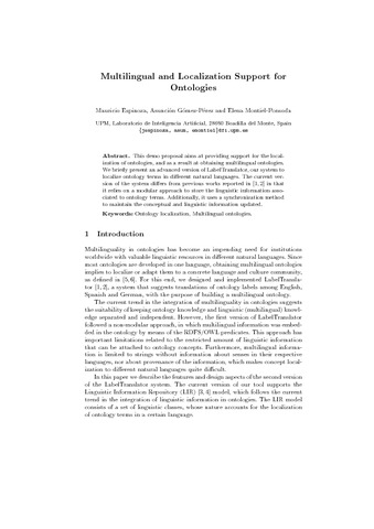 | Palabras Clave Informales: | Ontology localization - Multilingual ontologies |