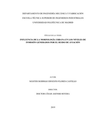 El ruido de aviación constituye un problema importante para la salud de las personas y el medio ambiente. Algunos estudios realizados a individuos expuestos al ruido de aviación demuestran baja calidad de sueño, irritabilidad y una tendencia a la hipertensión. Además de los altos niveles de presión sonora, los aviones emiten gases de efecto invernadero que contribuyen al cambio climático y causan problemas respiratorios. Por todas estas razones, algunos organismos internacionales han mostrado su preocupación por el impacto medioambiental de las aeronaves y han desarrollado planes para reducirlo. La Organización de Aviación Civil Internacional (OACI) ha propuesto el denominado enfoque equilibrado. Dicho enfoque propone estrategias para la reducción de niveles de ruido de aviación que se agrupan en cuatro elementos: reducción del ruido en la fuente, administración y planeación del uso de suelo, procedimientos operacionales de abatimiento de ruido y restricciones en las operaciones de aeronaves. Entre las actuaciones necesarias para la gestión del ruido aeroportuario, deben realizarse la diagnosis y el control de los niveles sonoros emitidos por aeronaves. En los alrededores de los aeropuertos se han utilizado herramientas como estaciones de monitorizado. Estos sistemas de medida tienen por objeto informar a la población para realizar un control de las emisiones de ruido aeroportuario. Además de las mediciones, existen modelos matemáticos que permiten diagnosticar el impacto del ruido aeroportuario en una región durante un período de tiempo. AEDT 2b es un ejemplo de modelo de predicción de ruido de aviación. Dicho modelo considera la atenuación atmosférica y topografía de una zona geográfica para predecir los niveles de ruido aeroportuario. Estas herramientas son fundamentales para llevar a cabo estudios que permitan delimitar zonas de servidumbre de un aeropuerto o para pronosticar los niveles de ruido a corto, mediano y largo plazo en una región. Sin embargo, la mayoría de los modelos actualmente existentes realizan predicciones considerando elementos básicos de propagación. Muchos de ellos no consideran variables como edificios, calles y parques que modifican la geometría fuente-receptor y están presentes en muchas ciudades. Para medir el ruido de aviación es necesario contar con una posición de referencia que permita realizar estudios comparables y consistentes. Dicha referencia debe estar lejos de fachadas u otros elementos reflectantes. No obstante, no siempre es posible encontrar una referencia adecuada. Esto se debe a que en los entornos urbanos existen elementos que modifican la propagación del ruido de aviación. Estos elementos constituyen formas urbanas, agentes y procesos que se transforman en una ciudad. Dichos agentes no son considerados en los modelos e inducen fenómenos de onda que cambian la propagación del ruido de aviación. Al estudio de estos agentes, se le conoce como morfología urbana. Uno de los objetivos que tiene esta tesis es mejorar los modelos de propagación del ruido de aeronaves en entornos urbanos. Para lograr dicho objetivo, primero se identifica qué variables de la morfología urbana son significativas en la propagación del ruido de aviación. Variables como la topología de calle (U o L), el ángulo de vista B y factores operativos intervienen en la propagación del ruido de aviación. Mediante un análisis del cambio en los niveles de ruido se determina si dichas variables son significativas en la propagación del ruido de aviación. Una vez identificados los factores significativos se determina en qué grado modifican los niveles de ruido en fachada. Los niveles de ruido en el interior de inmueble son de interés por los efectos negativos que tienen en la salud. Sin embargo, es complicado medir por largos períodos de tiempo en el interior de un edificio. Por ello, el nivel de ruido en el interior de un edificio se calcula con el nivel de ruido en fachada considerando el área de la fachada y el volumen del recinto. En esta tesis se propone un cálculo mejorado del nivel de ruido en fachada con el fin de obtener el nivel de ruido en el interior de un edificio con mayor precisión. De cara a un futuro, se espera que con la metodología propuesta en esta tesis se pueda realizar un modelado más riguroso al incorporar más variables como la altura de las fachadas y el material de las paredes y el suelo. El trabajo realizado con esta tesis supone un avance porque además de proporcionar información sobre el ruido de aviación en condiciones de referencia, se cuantifica el impacto de elementos de la morfología urbana sobre el nivel de ruido en fachada. ----------ABSTRACT---------- Aircraft noise represents an important problem for human health and the environment because of the high sound pressure levels generated. Some studies made to the population exposed to aircraft noise show low sleep quality, irritability and a tendency to hypertension. Apart from the noise emissions, aircraft also produce greenhouse effect gases which contribute to global warming and cause respiratory problems. All these drawbacks have raised the concern of international organizations and they have developed strategies to reduce aircraft noise. The International Civil Aviation Organization has proposed a balanced approach with the intention of mitigating the sound pressure levels produced by aircraft. This approach encourages the development of policies focused on four main elements: the reduction of noise at source, land-use planning and management, noise abatement operational procedures and operating restrictions on aircraft. It is necessary to perform the diagnosis of the sound pressure levels. Therefore, tools like Noise Monitoring Terminals have been installed in airports surroundings. Those terminals intend to inform the population in order to perform a noise emission control of the sound pressure levels caused by aircraft. Apart from