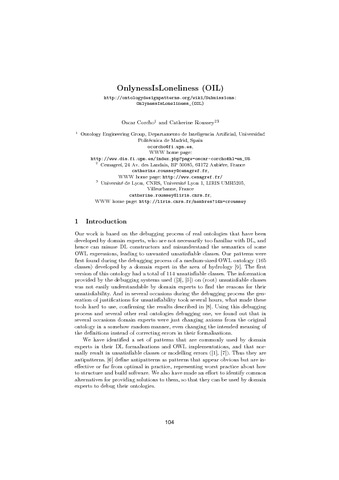 Our work is based on the debugging process of real ontologies that have been developed by domain experts, who are not necessarily too familiar with DL, and hence can misuse DL constructors and misunderstand the semantics of some OWL expressions, leading to unwanted unsatisfiable classes. Our patterns were first found during the debugging process of a medium-sized OWL ontology (165 classes) developed by a domain expert in the area of hydrology [9]. The first version of this ontology had a total of 114 unsatisfiable classes. The information provided by the debugging systems used ([3], [5]) on (root) unsatisfiable classes was not easily understandable by domain experts to find the reasons for their unsatisfiability. And in several occasions during the debugging process the generation of justifications for unsatisfiability took several hours, what made these tools hard to use, confirming the results described in [8]. Using this debugging process and several other real ontologies debugging one, we found out that in several occasions domain experts were just changing axioms from the original ontology in a somehow random manner, even changing the intended meaning of the definitions instead of correcting errors in their formalisation