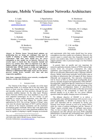 | Título: | Secure, Mobile Visual Sensor Networks Architecture |