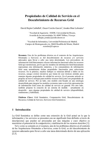 Propiedades de Calidad de Servicio en el Descubrimiento de Recursos Grid.