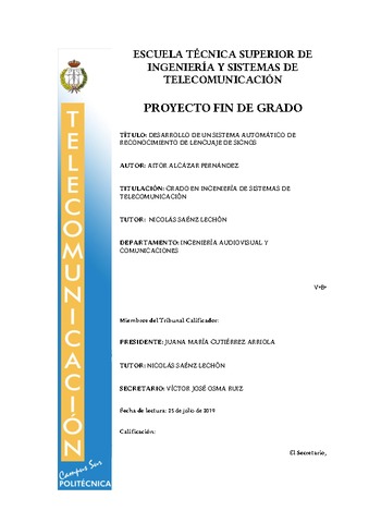 | Título: | Desarrollo de un sistema automático de reconocimiento de lenguaje de signos |